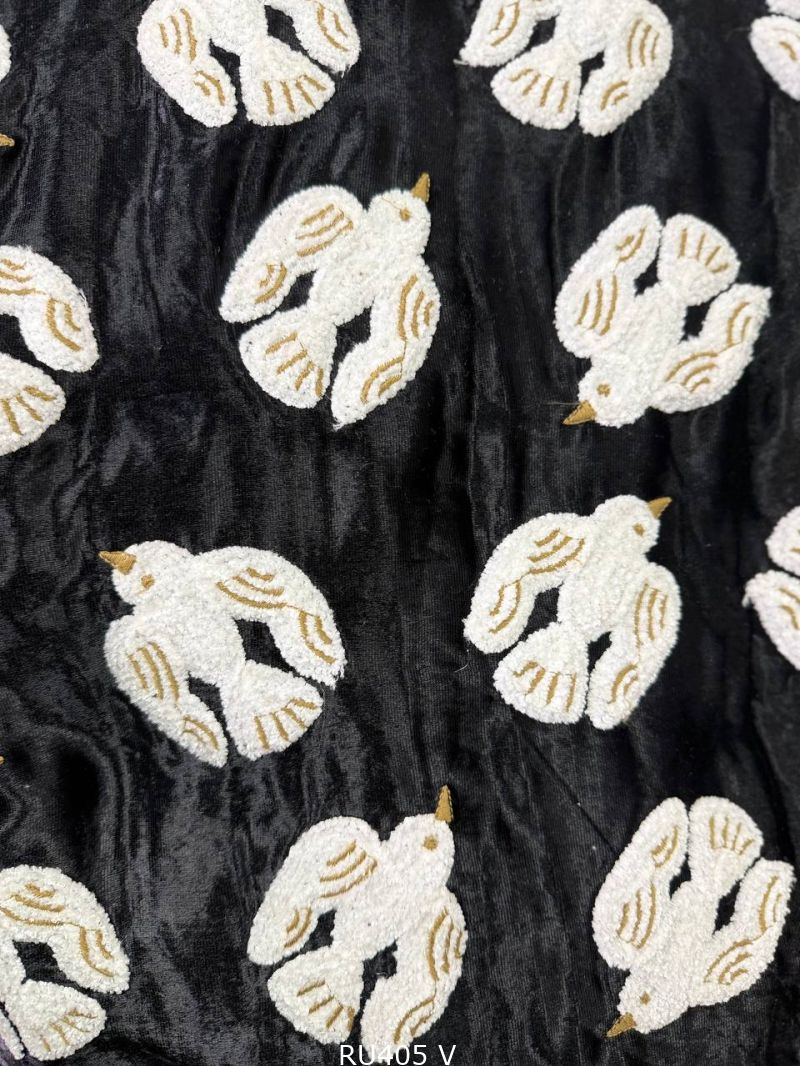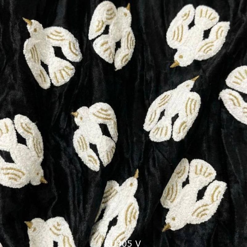 Вискозный бархат с объёмной вышивкой ""WHITE DOVE"" На глубокой черной бархатной основе расправляют крылья изысканные белые птицы. вышитые вручную. Их объёмные силуэты. дополненные золотистыми акцентами. создают впечатление движения и лёгкости. будто стая голубок взмывает в вечернее небо. Ткань из 100% вискозы отличается мягким благородным блеском и пластичностью. а вышивка добавляет ей арт-обаяния и делает уникальной. Этот материал идеально подходит для эффектных вечерних нарядов. кутюрных платьев. жакетов и аксессуаров. которые должны стать центром внимания. ???? 100% вискоза (бархат) ???? Объёмная вышивка белыми птицами ???? Мягкий блеск и пластичность ???? Для вечерних коллекций и кутюрных изделий