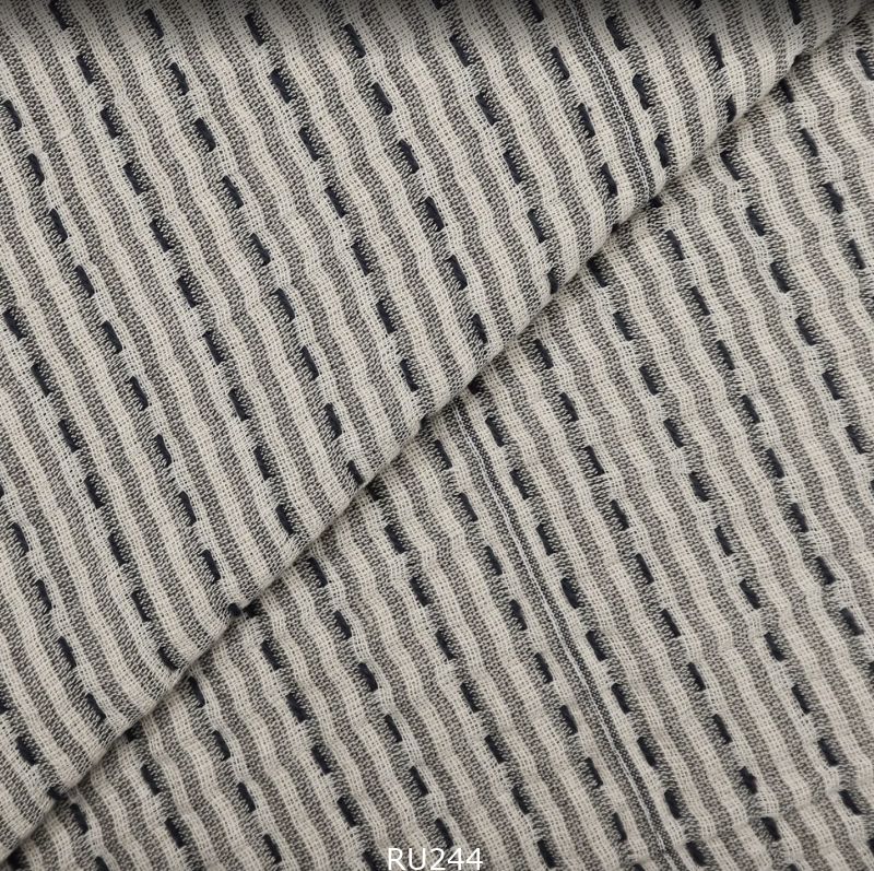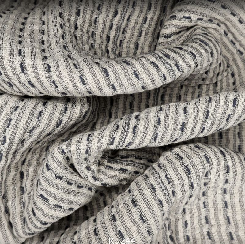 Эта ткань выполнена в технике многослойного ткачества и стёжки. где тонкие хлопковые нити создают рельефный узор в виде точек и линий. Мягкая фактура и лёгкая воздушность делают её не только декоративной. но и функциональной — она хорошо держит форму и при этом остаётся дышащей и приятной на ощупь. Стёганый хлопок традиционно использовался в Индии для создания лёгкой. но прочной одежды и покрывал. Сегодня он вдохновляет дизайнеров на создание пальто. жакетов. жилетов и аксессуаров. которые ценят фактуру и аутентичность ручной работы.