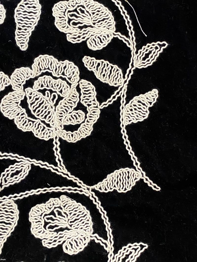 Изысканный хлопок. украшенный богатой вышивкой. превращается в материал для по-настоящему эксклюзивных изделий. Мягкая и натуральная основа подчёркивает сложность декоративного узора. создавая гармонию между простотой хлопка и утончённой роскошью ручной отделки.