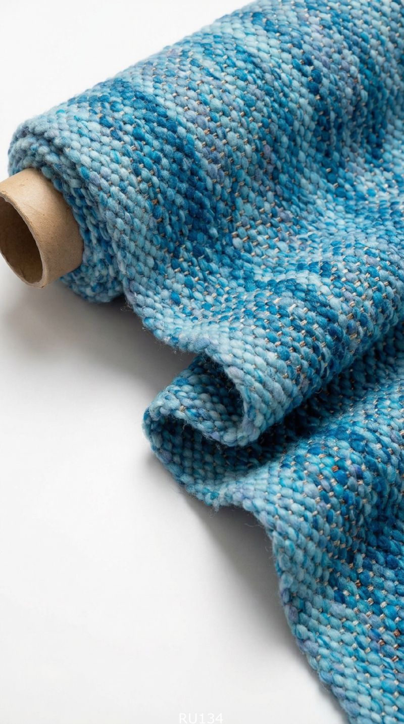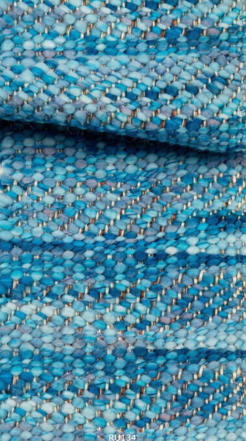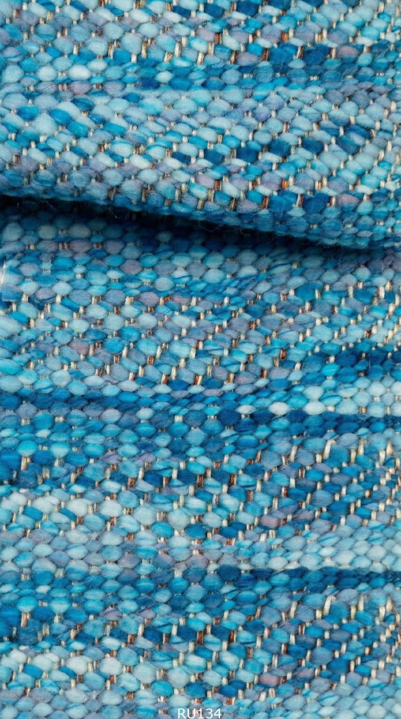 Фактурное шерстяное полотно ручного ткачества в сине-голубой гамме