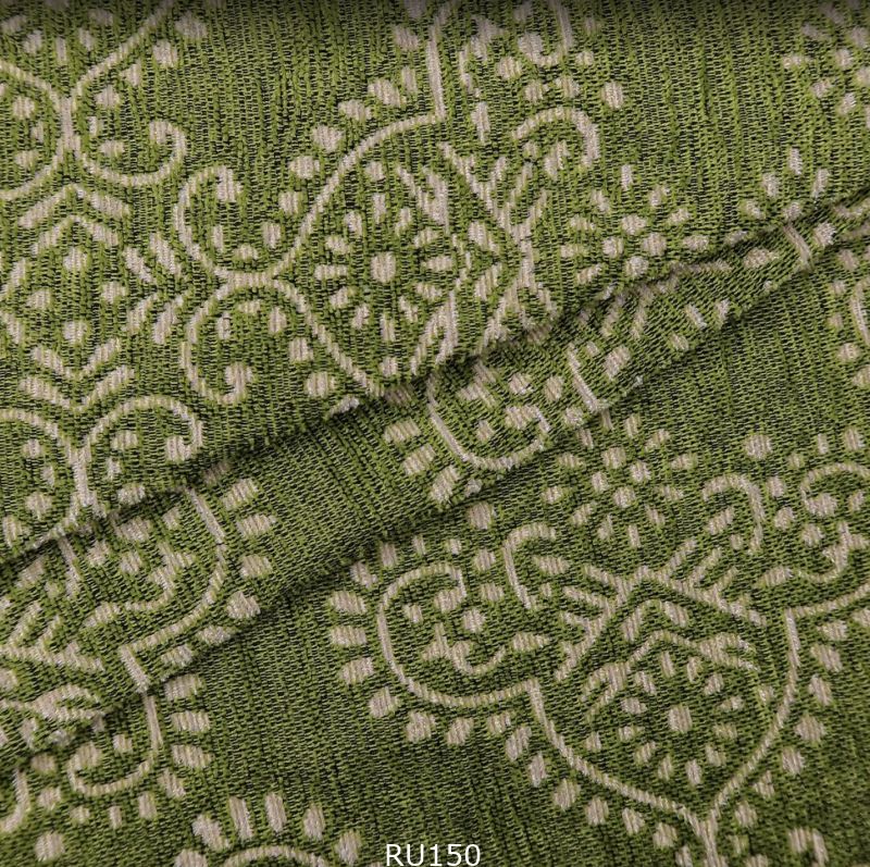 Эта ткань сочетает в себе прочность хлопка и декоративность жаккардового плетения. С обеих сторон проявляется орнамент: с одной — на светлом фоне расцветает зелёный узор. с другой — светлый орнамент играет на насыщенной зелёной основе. Плотная фактура идеально подходит для пальто. жакетов и аксессуаров. а двусторонний эффект открывает дизайнеру широкие возможности для экспериментов с подкладкой. отворотами и комбинированными деталями.