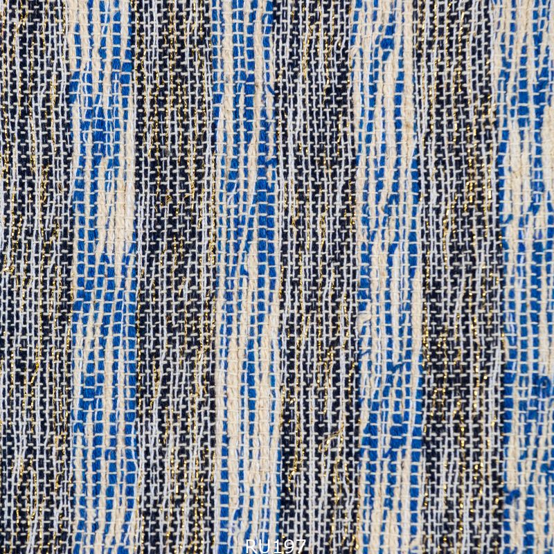 Эта фактурная ткань напоминает игру солнечных лучей на поверхности моря. Синие. кремовые и тёмные нити переплетаются в динамичном ритме. а тонкие вкрапления люрекса создают мерцающий акцент. словно блики света на волнах. Материал идеально подойдёт для создания жакетов. платьев. юбок и костюмов. которые будут сочетать в себе натуральность хлопка и праздничную энергетику блеска.